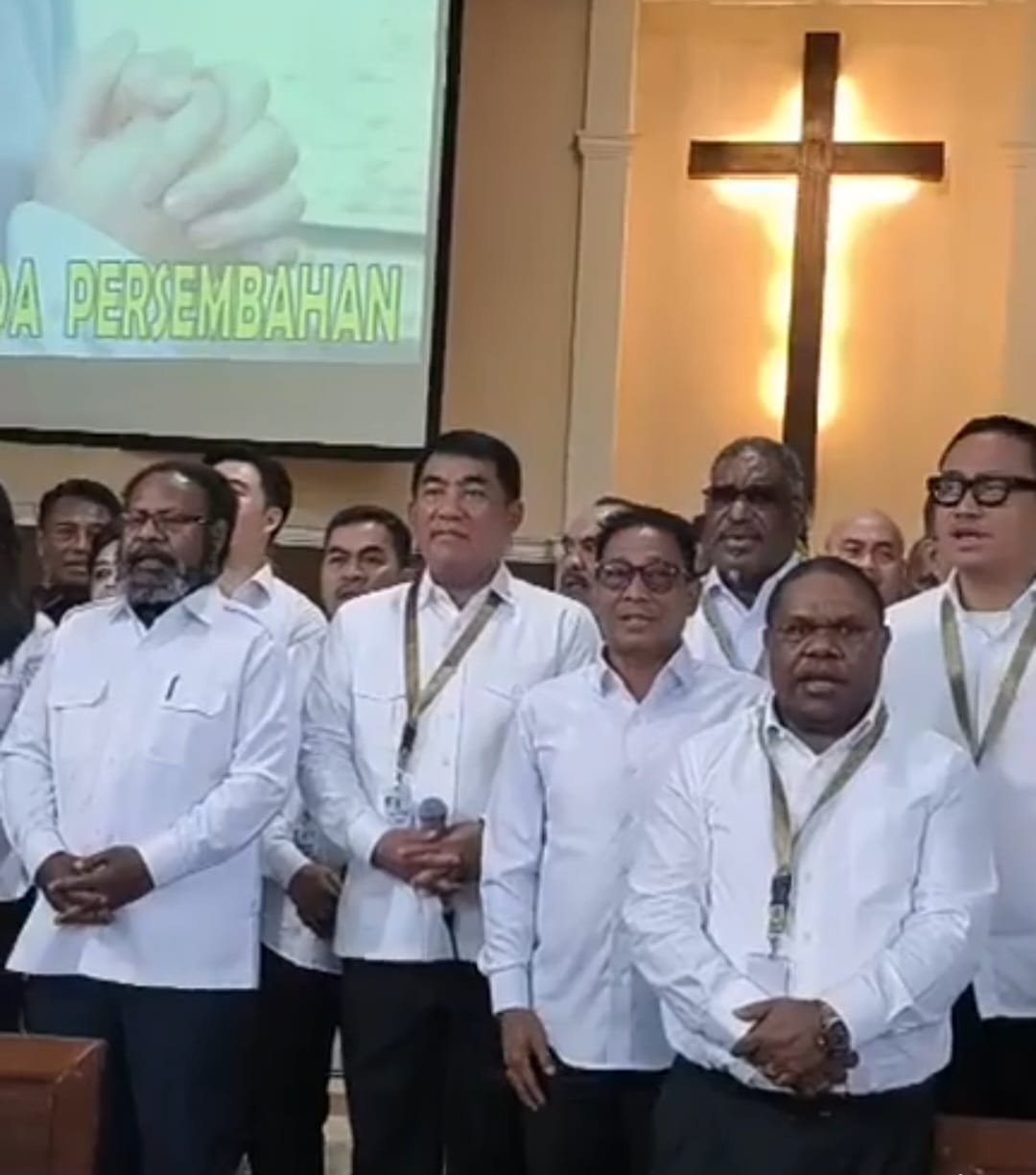 Dalam ibadah tersebut, hadir Gubernur Sulawesi Utara Mayjen (Purn) Yulius Selvanus bersama beberapa kepala daerah lainnya, termasuk Michael Thungari, Joune Ganda, dan Sherly Tjoanda, yang tampak mengenakan pakaian serba putih-hitam. Selain itu, Bupati Kepulauan Sitaro, Chintya Kalangit, serta Bupati Poso yang berdarah Kawanua, Verna Inkiriwang, turut serta dalam puji-pujian bersama para kepala daerah lainnya.