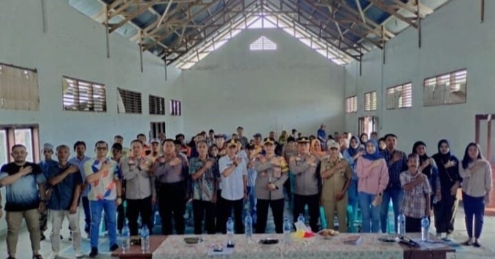 BOLMONG KOMENTAR-Kapolres Bolaang Mongondow Timur (Boltim),AKBP Golfried Hasiholan Pakpahan, S.S.T., S.H., M.Si., M.Mar.Eng., bersama jajarannya turun ke masyarakat dalam agenda “Jumat Curhat” di Desa Kotabunan Induk Kecamatan Kotabunan, Jumat (25/04/2025).
