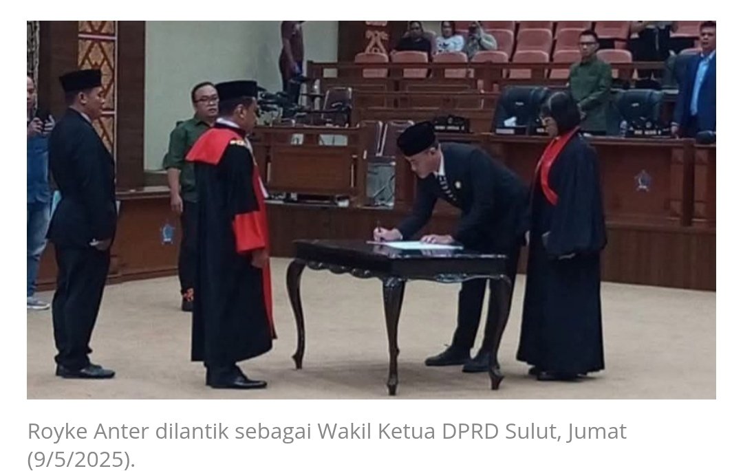 Ia dilantik oleh Ketua Pengadilan Tinggi Manado Amin Sutikno SH MH, di ruang rapat paripurna Kantor DPRD Sulut berdasarkan Surat Keputusan Menteri Dalam Negeri.