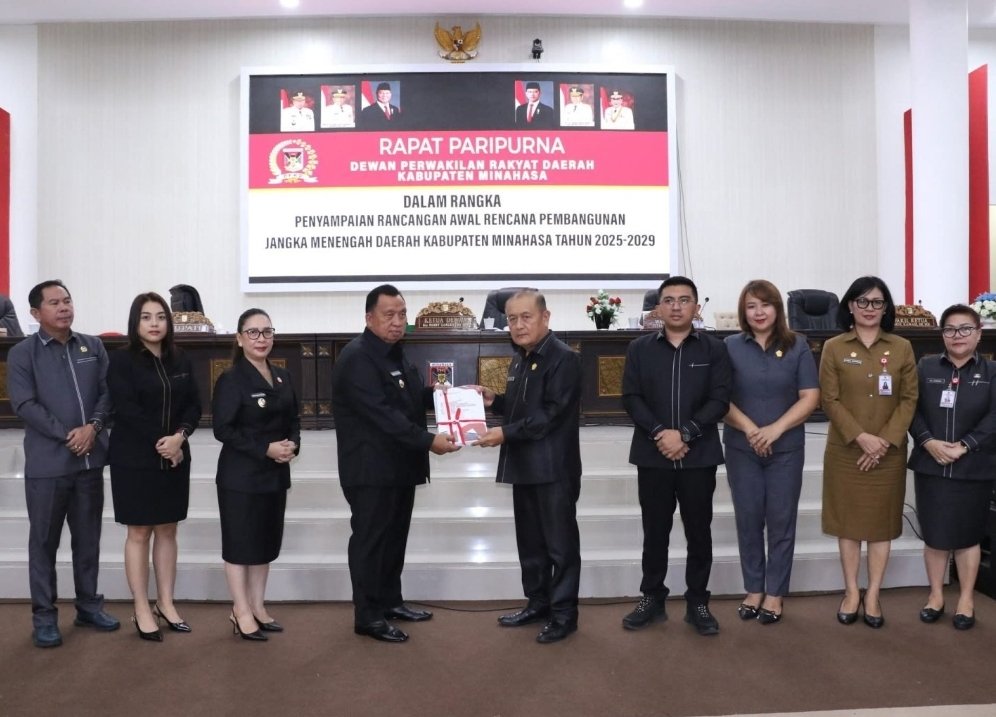 MINAHASA KOMENTAR-Dewan Perwakilan Rakyat Daerah (DPRD) Kabupaten Minahasa menggelar Rapat Paripurna dalam rangka penyampaian Ranperda Rencana Pembangunan Jangka Menengah Daerah (RPJMD) Kabupaten Minahasa Tahun 2025–2029.