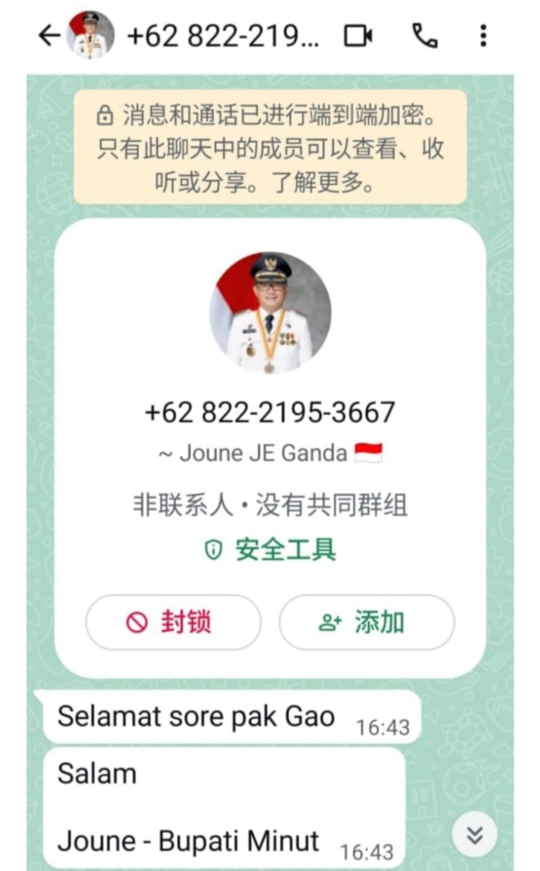 Nomor asing dengan kode internasional +6382221953667 terdeteksi mencatut identitas Bupati Joune Ganda, diduga untuk melakukan aksi penipuan atau manipulasi informasi. Modus ini bukan yang pertama, namun tetap berpotensi merugikan masyarakat jika tidak diwaspadai.