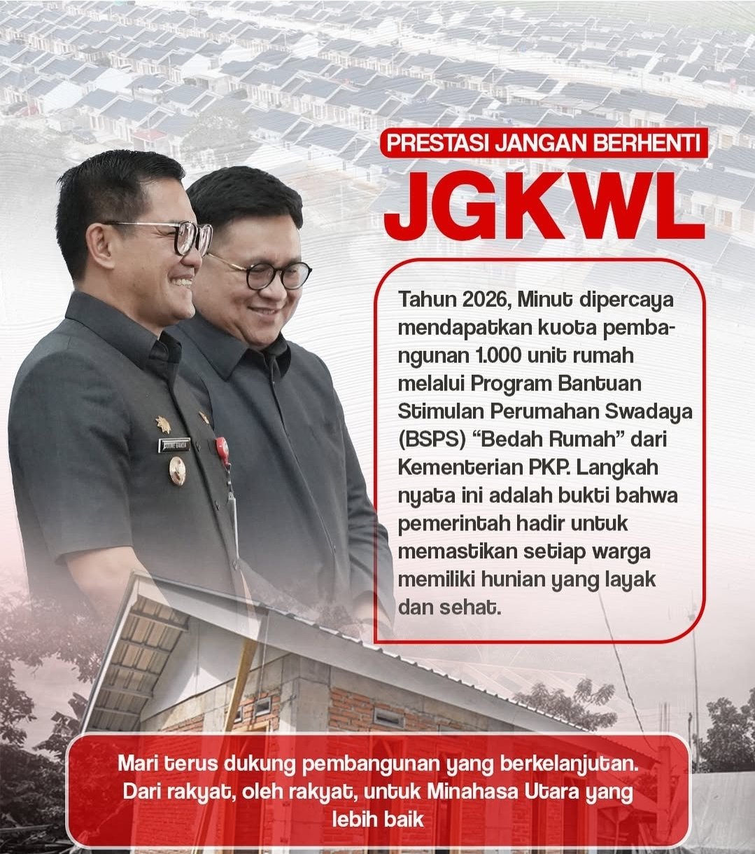 “Rumah adalah tempat keluarga bertumbuh, tempat harapan dibangun. Dengan adanya program ini, kita memastikan tidak ada warga Minahasa Utara yang tertinggal dalam menikmati hak dasar mereka,” ujarnya.