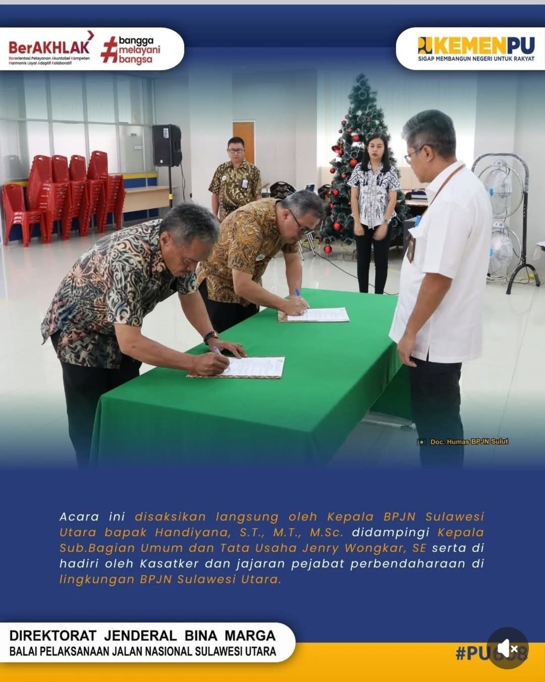 MINUT KOMENTAR-Balai Pelaksanaan Jalan Nasional (BPJN) Sulawesi Utara menggelar acara Serah Terima Jabatan (Sertijab) di Ruang Aula lantai 4 Kantor BPJN Sulut, Selasa (03/02/2026). Momentum ini menjadi bagian penting dalam menjaga kesinambungan tugas dan fungsi di bidang preservasi jalan nasional.