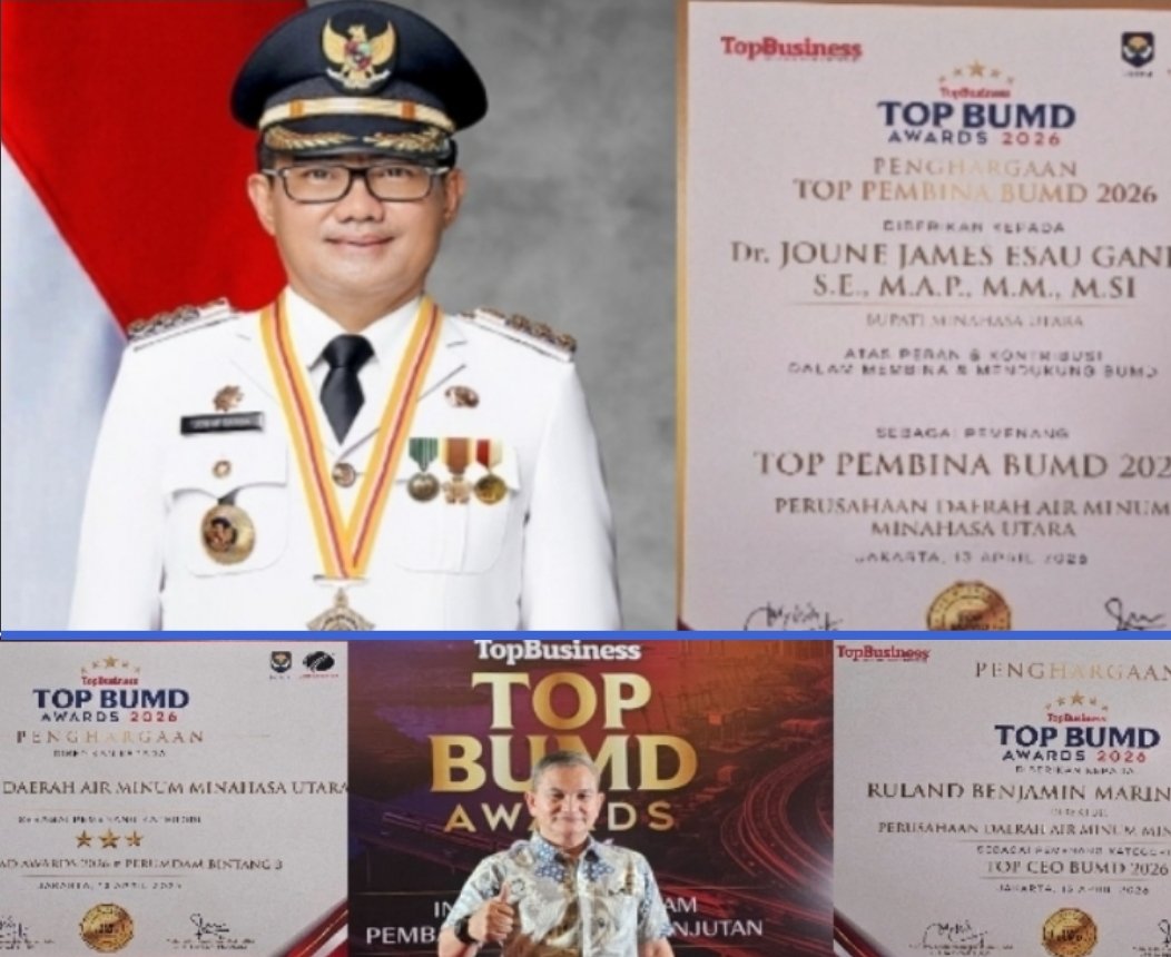 JAKARTA KOMENTAR-Perusahaan Daerah Air Minum (PDAM) Kabupaten Minahasa Utara kembali menorehkan prestasi membanggakan dengan meraih penghargaan TOP BUMD 2026. Penghargaan bergengsi ini diterima langsung oleh Direktur PDAM, Ruland B. Maringka, dalam acara puncak yang digelar di Dian Ballroom Hotel Raffles Jakarta pada Senin (13/04/2026).